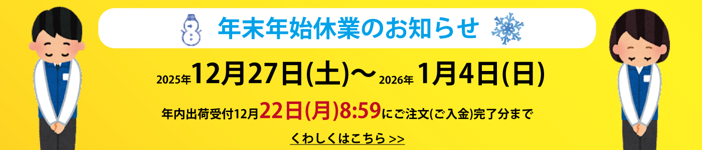 年内発送受付22日(月)8:59まで/年末年始休業のお知らせ
