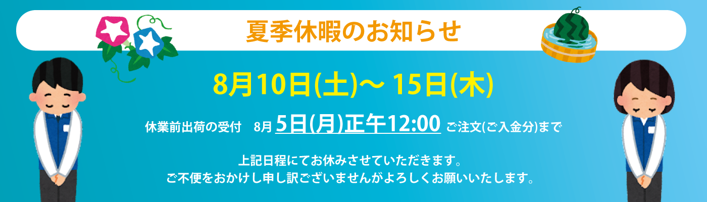夏季休業前の配送のご注文受付は8月5日(月)正午12時 ご注文(入金分)まで