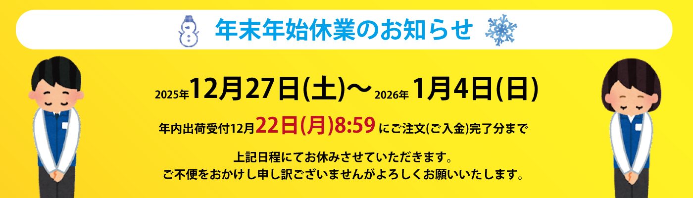 ※在庫がある商品につきましては、2026年12月22日(金)8:59までにご注文・ご入金完了で休業前に発送いたします。