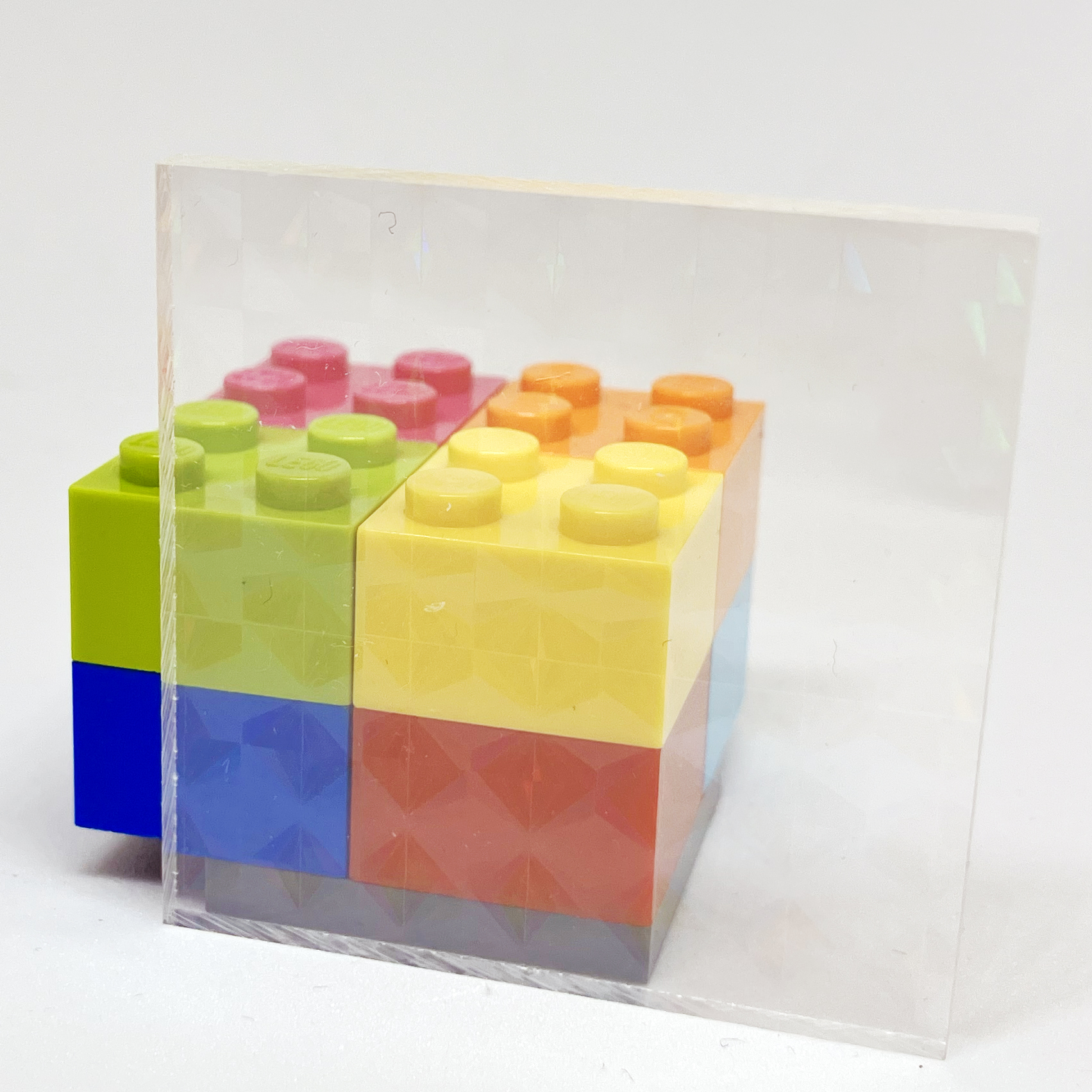 PETフィルム(ホログラム)を貼り付けたアクリル板です。