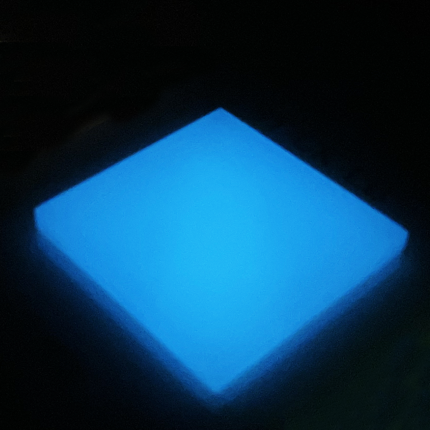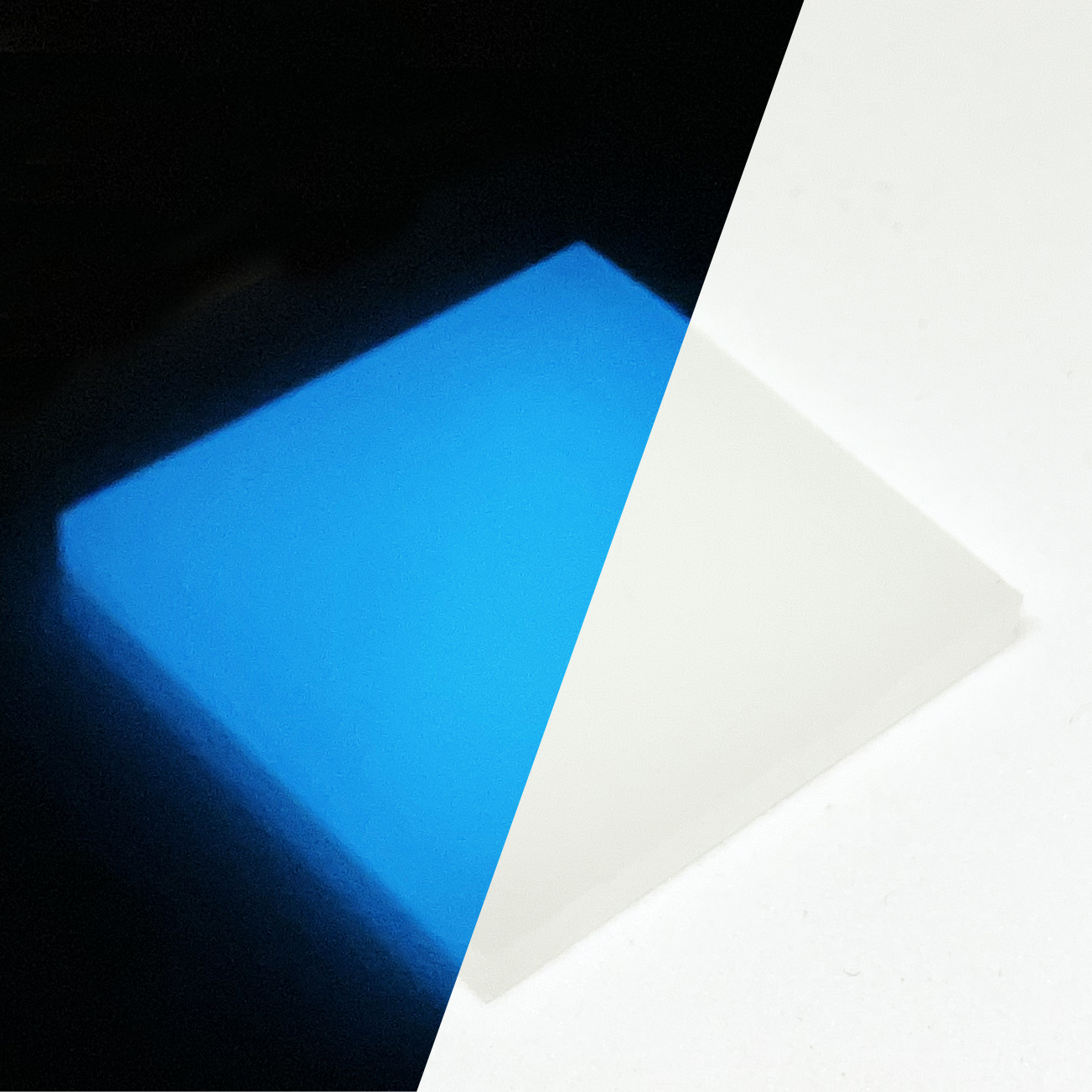 太陽光や電灯の光を蓄え暗闇で光るアクリル板です。