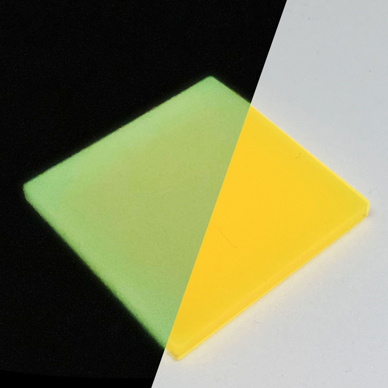 太陽光や電灯の光を蓄え暗闇で光るアクリル板です。