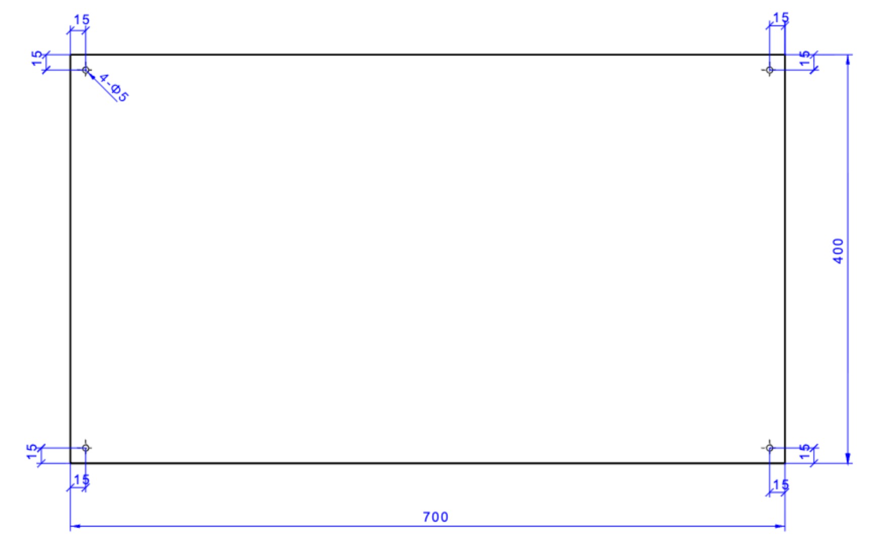 (オーダー)アクリル透明(押出)5mm厚 ・400x700mm×1枚・丸穴5φ×4箇所