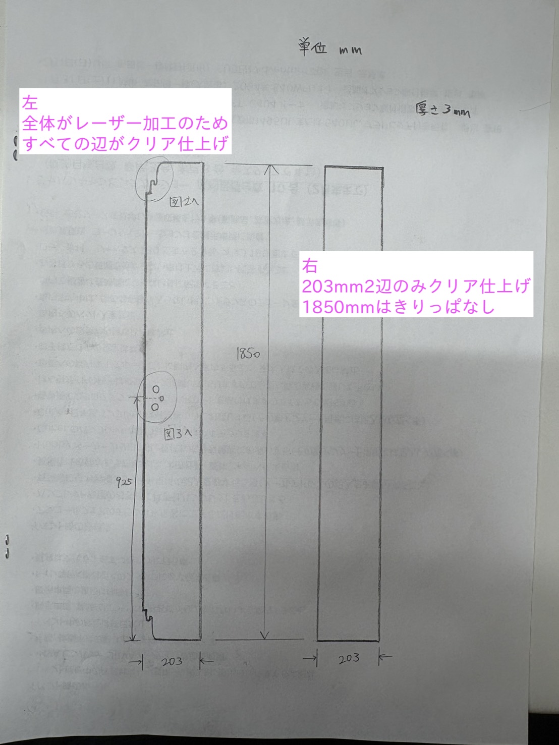 アクリルざんまいはサイト掲載以外のアクリル加工もご対応いたします。手書きのイメージ図や設置場所のお写真をお送りください。 akuriru-zanmai@kurihara-kakou.co.jpアクリルざんまいの担当者より折返しご連絡いたします。