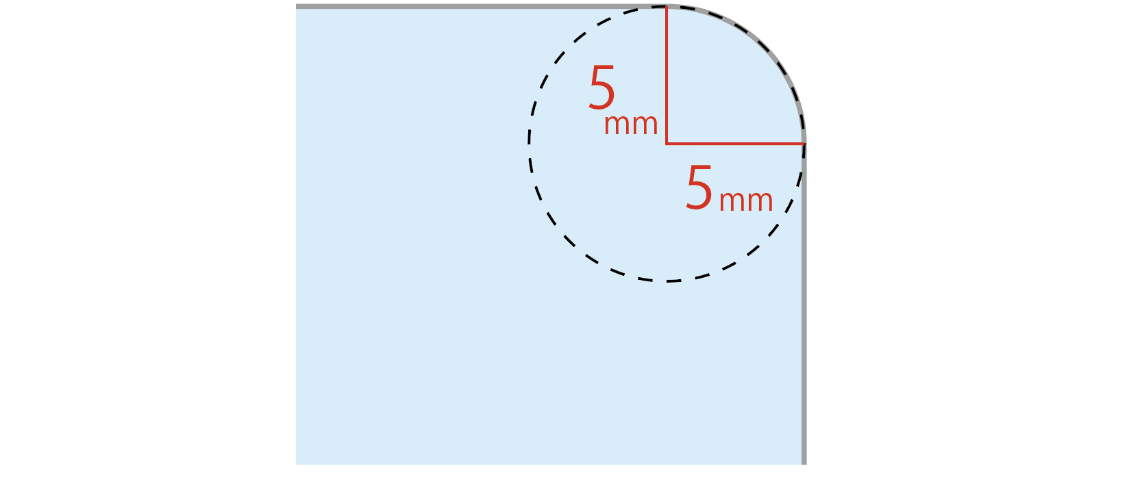 R5のご指定の場合、半径5mmの円をイメージした丸みになります。